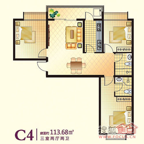 3室2厅2卫-三室两厅两卫113.68平米C4