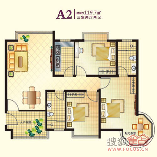 3室2厅2卫-三室两厅两卫119.7平米A2