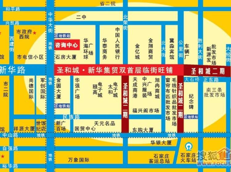 一期位尊中华大街至公里街的新华批发市场新华路地下核心商圈。二期的建成,为新华批发市场新华连通南三条批发市场的东西互动财富聚集做出巨大贡献。