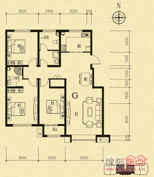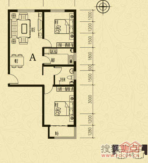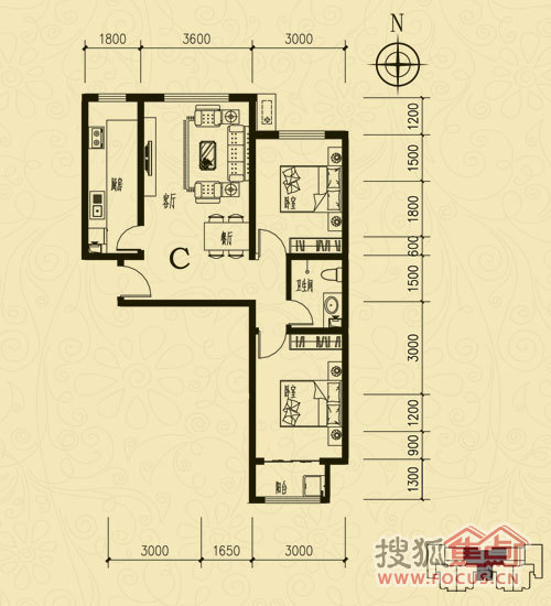 2室2厅1卫-两室两厅一卫88.60平米 C