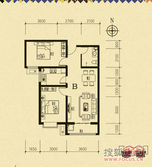 2室2厅1卫-两室两厅一卫 87.66平米B