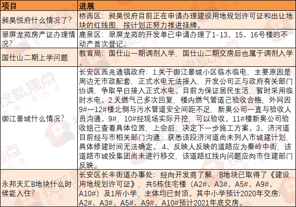 长安区长丰街道办事处:经向开发商了解,B地块已取得了《建设用地规划许可证》,共5栋住宅楼(A2#、A3#、A5#、A9#、A10#)及1所小学,主体均已封顶。其中小学预计2020年交房;A2#、A3#、A5#、A9#、A10#预计2021年底交房。