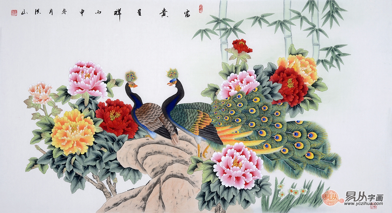 张洪山孔雀牡丹图《富贵呈祥》(作品来源:易从网)