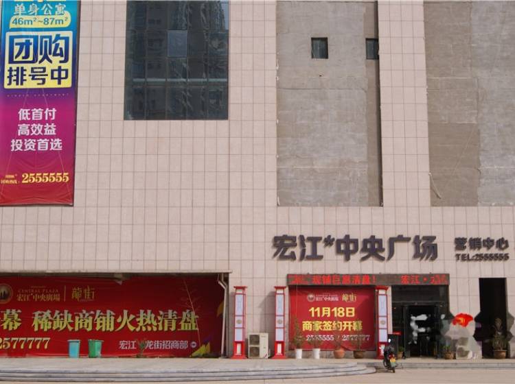 宏江中央广场是由我公司倾力打造,占据市中心黄金位置,70万平方米的庞大体量,堪称峡市之。宏江中央广场是市政府确定的城中村改造项目,整个项目总占地面积150亩,占据了市中心具人气的黄金。建筑面积达70万平米,雄踞三门峡龙头地脉,东临上阳路、西接六峰路、南通文明路、北达和平路、住宅单套面积从76平米到147平米不等,程度地满足了客户对房型和面积的需求;同时,近20万平米的配套商业配置也为小区住户的购物、生活、休闲等带来了便利与快捷。国际流行业态的各种层次的商铺,面积从30到300平米,应有尽有,独栋、联体、复式、多层……各种建筑格局适应客商全方位的需求。 宏江中央广场呈现多功能业态,居住、旅游、休闲、娱乐、商务、购物……一站式消费,享受尊崇高尚生活。打造成三门峡的城市名片和旅游名片,以全新理念铸造城中城。宏江中央广场内开发龙街,集娱乐、购物、餐饮、休闲、会所等于一体,以超大商业辐射黄河金三角,以少有的规模引领时尚潮流。通过龙文化主题概念,提升商业品位,将传统商业提高到一个新的层次,打造三门峡的“王府井”、“南京路”。宏江龙街主打文化牌,引领时尚、传播文化、帮助商家提高赢利能力。精品百货、餐饮酒吧、超市量贩、品牌专卖等“以文促商、以商养文”,促进商业与文化优质结合。