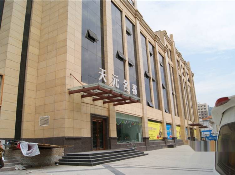 天元名郡位于陕县行政大道陕州大道与高阳路交汇处,10万平米新欧陆主义风情建筑,集萃高端住宅、星级酒店、风情商业、私家会所等多种建筑形态,以高低错落的天际线,50米超宽楼间,40%超高绿化,缔造公园式人居梦想。项目分段式外立面设计,造型丰富,典雅大方,主墙身采用高档米黄色通体外墙砖,局部搭配光面金麻花岗岩,打造纯真的欧陆风格,散发浓郁的豪门气息。
