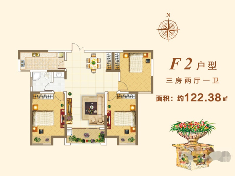 建面122.38m²