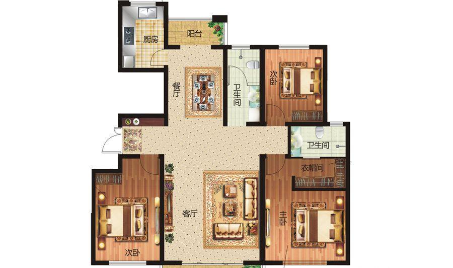 在售 户型方正 主卧朝南 带衣帽间 厨卫不对门 露台