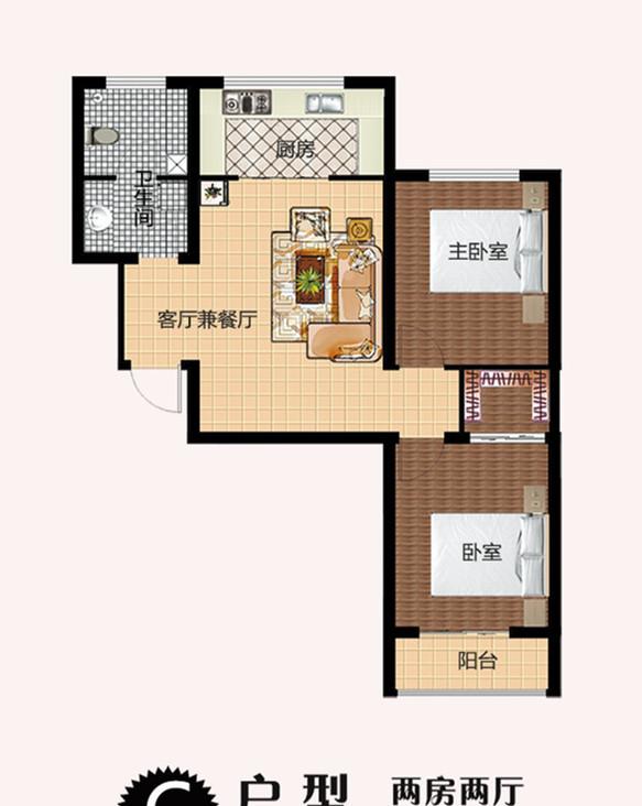 2室2厅1卫-F户型