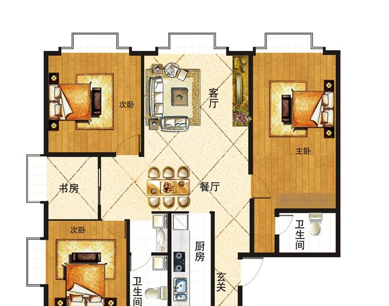 3室2厅1卫-三居室