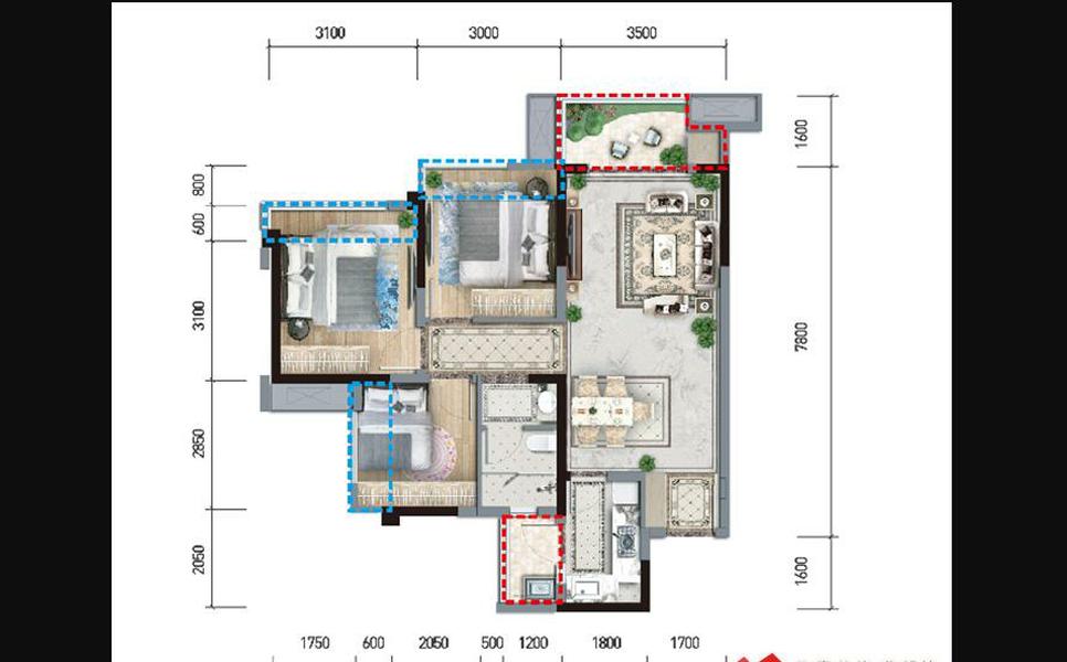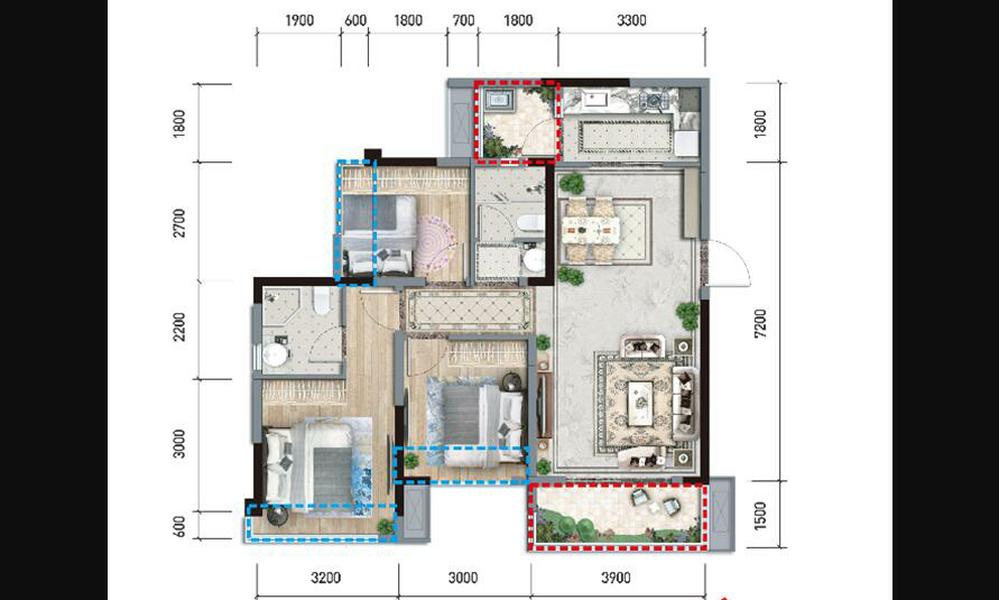 3室2厅2卫-二期外滩名门A3户型