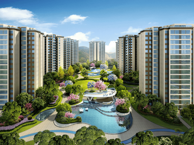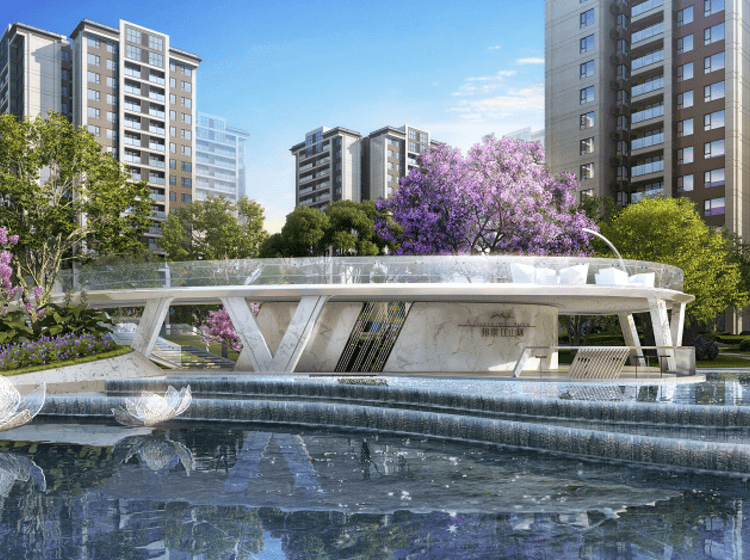 小区内部,造园手法上讲究依山而起顺势而建,勾勒出以山岳为邻,园径为伴的极静之宅。既尊崇“现代艺术”的设计理念,又不失中华传统居住礼序,从园区的设计、排布到动线,都遵循中华传统——中轴对称布局,让生活有跨越也有回归。在空间结构打造上,呈现出了“一轴、一环、一心、四园”(迎宾主轴、健康慢跑环、中心景观庭院、主题功能活动园区)的场景式橱窗,使园区空间自然丰沛,移步易景,四时不同,描绘出春、夏、秋、冬,四季有花四季有景的别致景色。