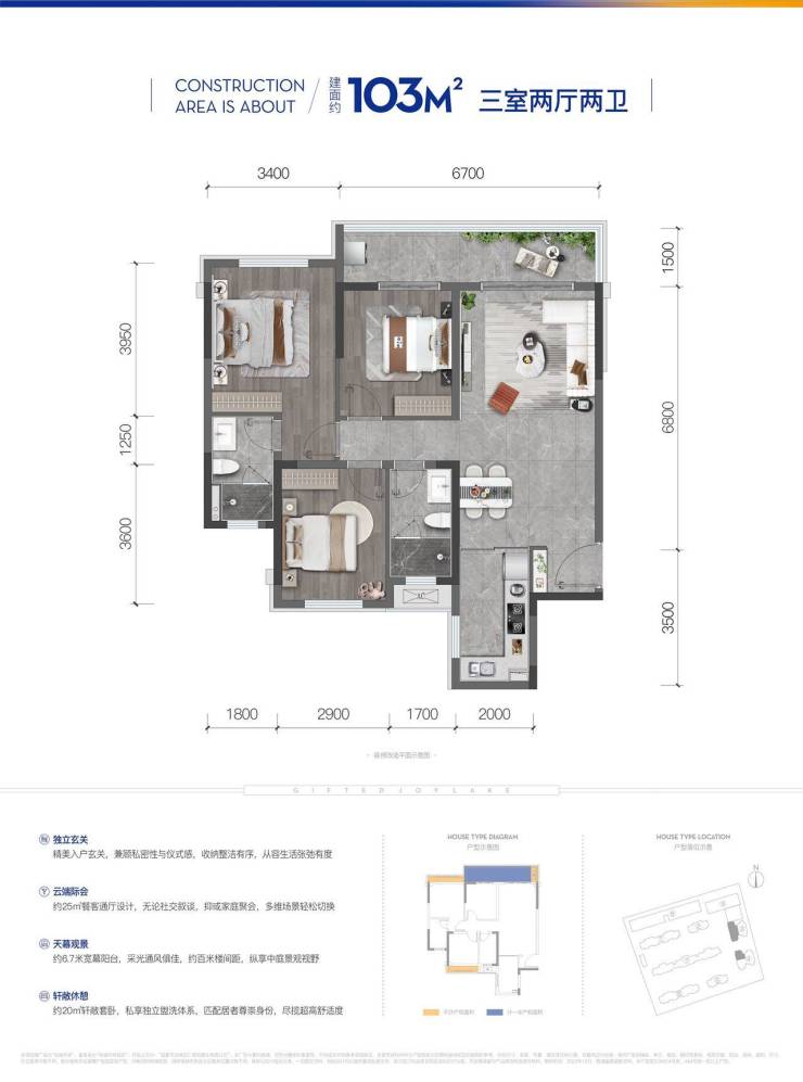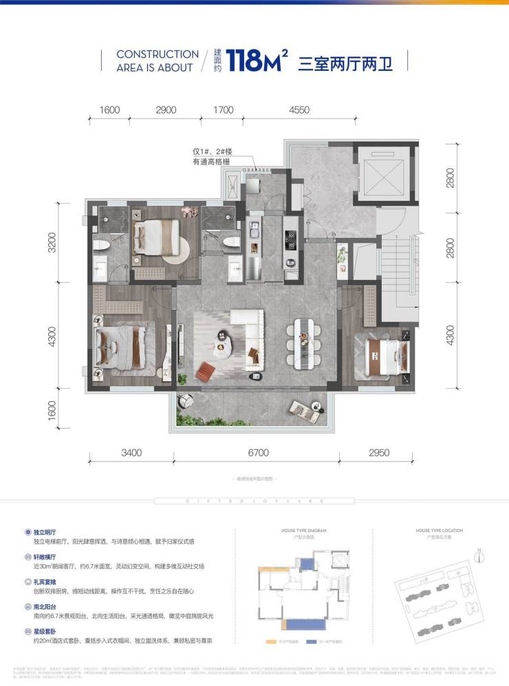 景悦|建面约128㎡全景豪华住宅 大型阳台可欣赏双中庭景观