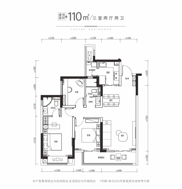 114平横厅套三双卫(总高26层,3梯6户)总价180万起
