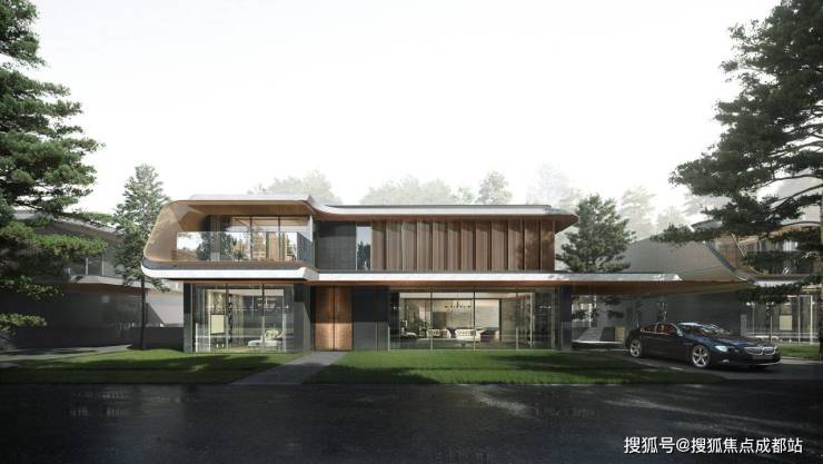 现代主义建筑风格,约16米奢阔面宽,全景落地观景窗,飞檐式屋顶设计,立体花园体系,全套房配置,独立归家动线;