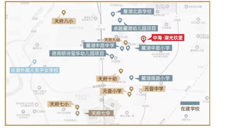 优质学府:天府七中、四川天府新区第七小学、元音中小学、天府新区麓湖幼儿园、天府新区麓湖小学;