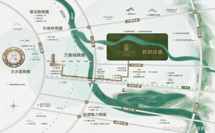 当下成都主城超过100亩的大盘已屈指可数,位于东三环由华润置地革新筑造的上璟润府,总体量达约400亩,是融合住宅、公园、河道、慢行系统、社区空间为一体,“自成一城”,由一条华润置地业主专享的社区专线——1站学校、2站地铁、3站万象城,链接主城生活圈,串联起交通、教育、商业、生态、生活5大中心配套。