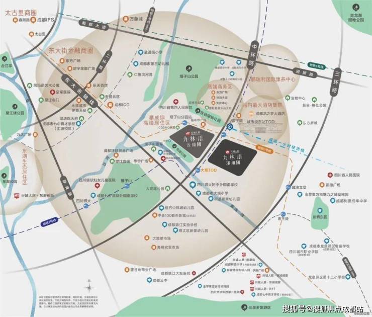 商业繁荣:所处的东客站生活圈、毗邻攀成钢商务生活圈、站南金融城商圈,步行可达华宇广场、鹏瑞利广场,车程5-10分钟可达锦华万达、卓锦曼购中心、魅力凯德广场、万象城等,沿东大街到达春熙路、太古里、IFS 仅需 20 分钟左右。