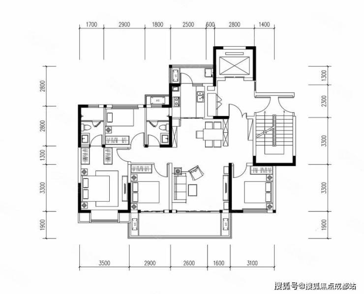 四室两厅两卫,纯南北板式通透设计,保证了室内空气的流通和充足的采光。采用方厅打造,客厅、餐厅、厨房一体化设计,使公共空间更加开阔,便于家庭成员之间的互动和交流。