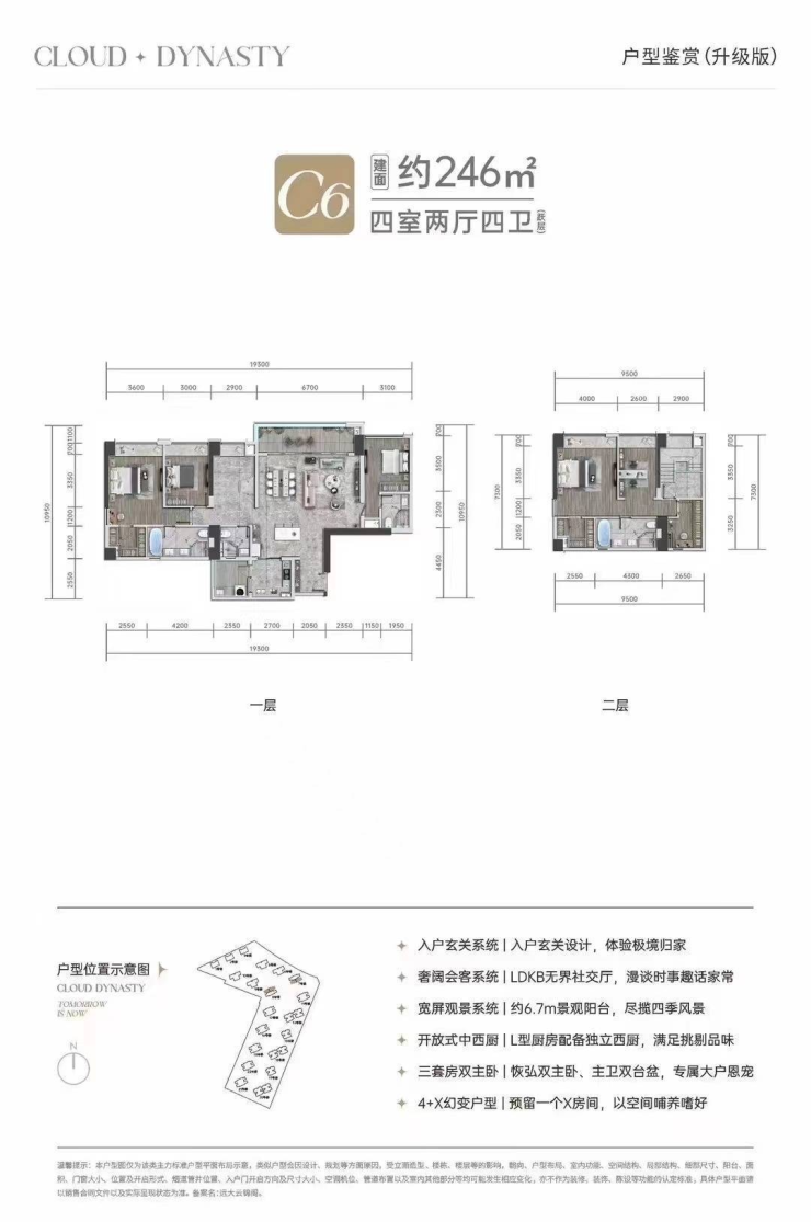 远大海湾云锦,位于高新南区和天府新区接壤处,前有软件园,后临新川科技园,和欧洲中心隔锦江相望,简直就像是城南的宠儿。项目建筑面积76万㎡,超过2700套大户型住宅。目前在售超高层住宅,主推建面169-297㎡,单价30000-38000元/㎡,交付时间为2026年1月。