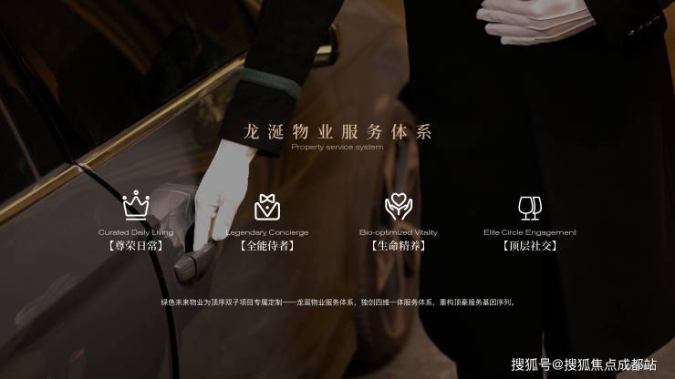 绿色未来物业为顶序双子项目专属定制——龙涎服务标准,以【尊荣⽇常】【全能侍者】【⽣命精养】【顶层社交】四维⼀体服务体系,同源世界顶豪基因,重构豪宅服务标准。