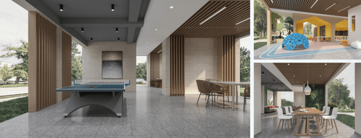 创新架空层设计,涵盖儿童乐园、长者活动中心、茶室等多功能休闲空间。