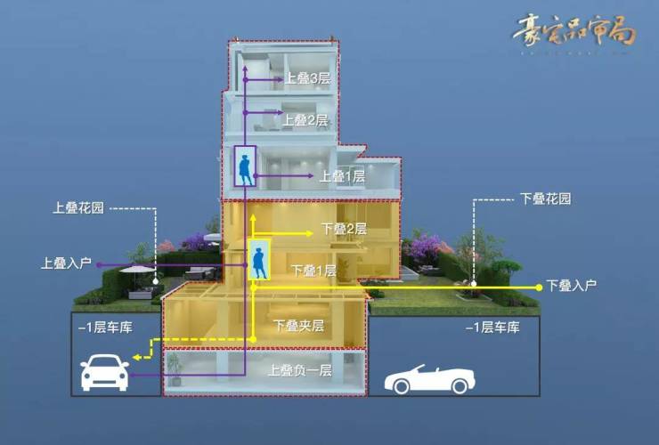 具有独特设计的独立回家动线和双入户方式,私梯入户以及北侧花园入户。采用纯板式结构,户户通透,面宽约11.85米,是今年主城叠拼中面宽最大的。地下室拥有U形采光井,宽约1.5米,长约10米,可用作多功能厅,私密娱乐空间。外立面采用稀有的Low-E玻璃和金属铝板,保证采光效果的同时具有视觉冲击力。低密度设计,楼间距舒适,叠墅和高层楼间距最大约47米。上叠2层赠送了近22平方米的露台。