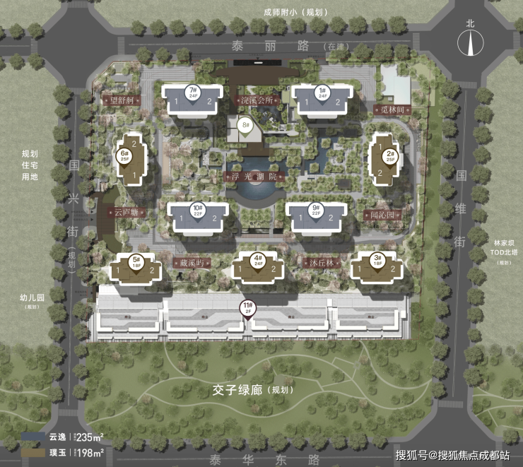 金茂璞逸锦江位于锦江区锦江大道以南、林家坝 TOD 以北,交子绿廊旁,占地约52亩,容积率2.5,有9栋 18-25层的住宅,均为全南北朝向T2板式结构,首层均为架空层。项目采用 “270°全景舱端厅”大平层设计,以东方审美为基调,涵盖隐奢酒店式会所、恒温泳池、行政酒廊等设计。