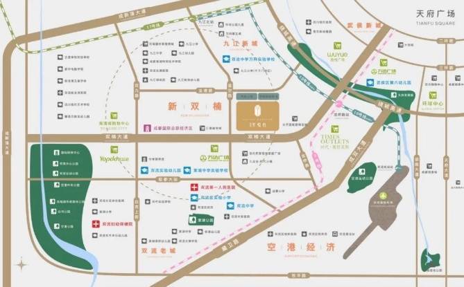 紧邻双流万达广场、城南优品道、时代奥特莱斯海滨城购物中心等繁华商业,悦启高配生活所向