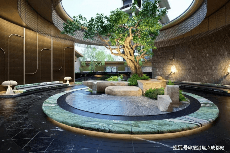 重点说下,为实现三面景观的视野平权,麓湖金麟樾联合蓝调国际和基准方中,设计了无数个版本,最终决定花重金打造错位的围合式布局,设计了这条约200米的艺术中央景观带。