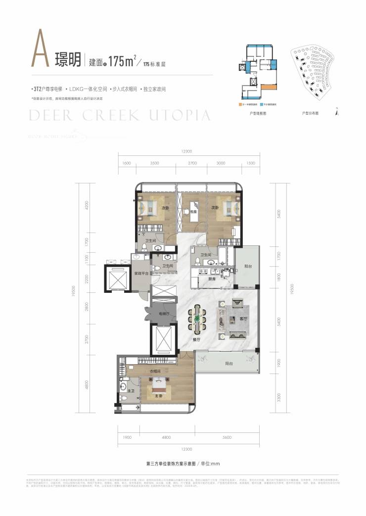 ②三梯两户顶儫配置:公梯与私梯分离,管家保姆专属电梯,独立入户动线。