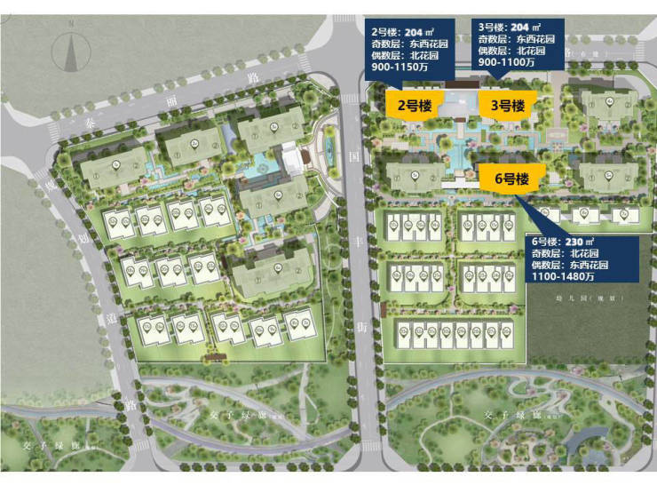 3栋:面积204㎡,总价900-1100万(奇数层东西花园,偶数层北花园)