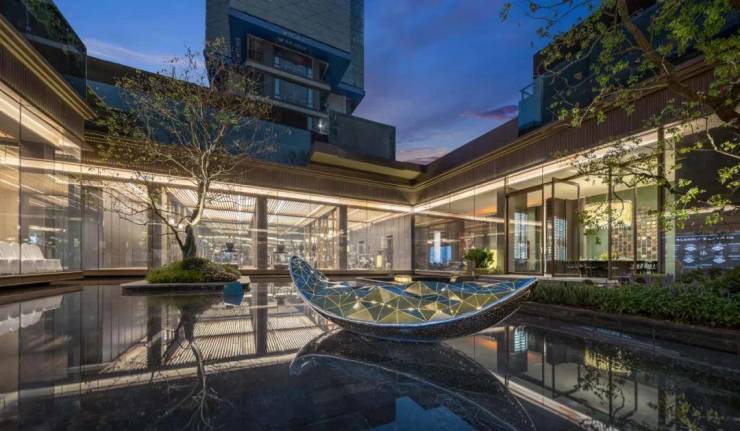 在I期酒店式社区之上,持续系统性深入研究精奢度假酒店场景,匹配主城高端改善居住的升级点,将酒店美学与度假体验深度融入社区设计之中,带来全新的主城低密院落式度假生活场——通过一核两轴六园一街的景观场景规划,将奢华感的酒店规制、松弛感的度假氛围、自然感的浮岛水岸风情贯穿日常生活,在车水马龙的都市之中,创造一种舒适而放松的生活情景, 让度假场景真正融于社区生活,回归自然本真。