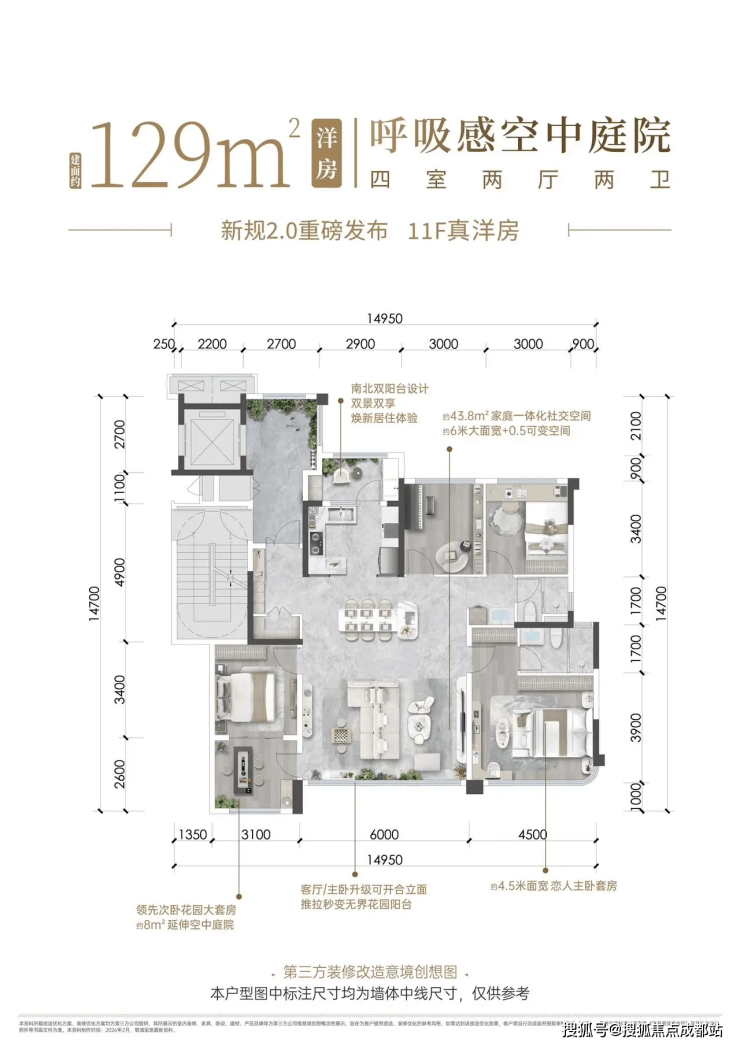 建面约 129㎡ 四室两厅两卫(洋房,总价 430 万起)