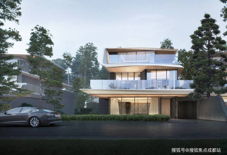 现代主义建筑风格,约16米奢阔面宽,全景落地观景窗,飞檐式屋顶设计,立体花园体系,全套房配置,独立归家动线;