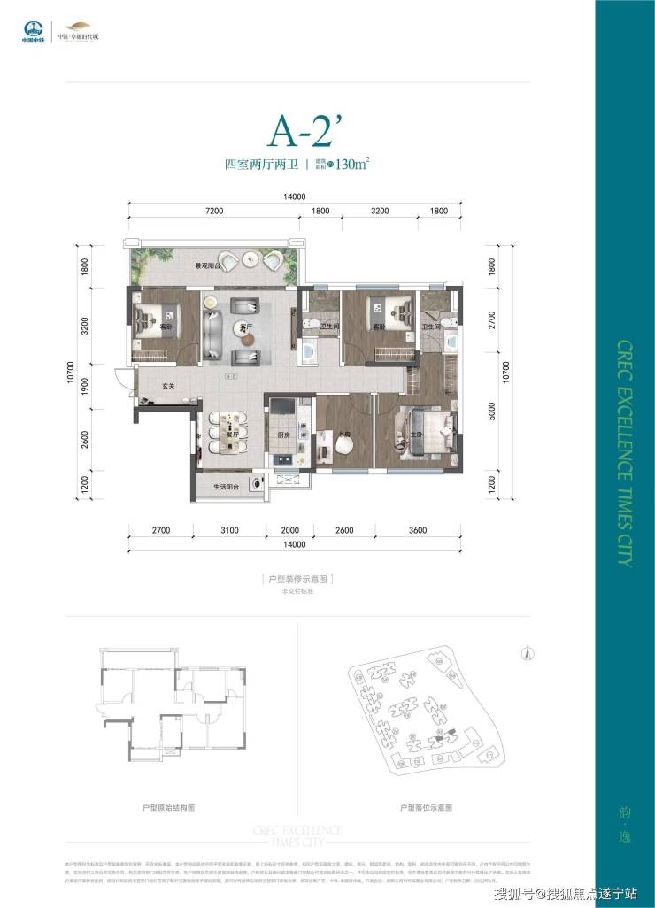 A2户型——建筑面积约130-131㎡四室两厅两卫