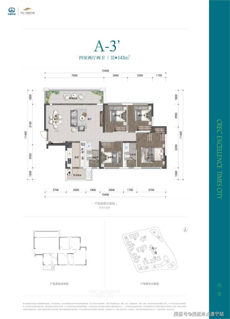 A3户型——建筑面积约143㎡四室两厅两卫