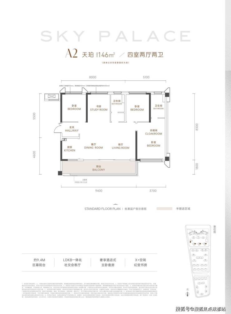 约9.4M宽奢阳台,幻变空中花园;LDKB气派会客厅,多元社交空间;酒店式主卧套房,诠释奢居理想;独立灵动书房,栖息身心的理想国
