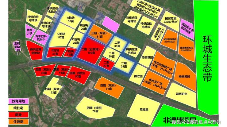 位于片区西侧的青羊区教育科学研究院附属学校新城校区(中学),规划占地约34.6亩,设计班额36个,每班50人,目前已完成全部封顶