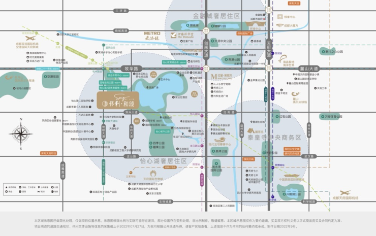 >板块价值:城南三角中心,天府向南第一站,高光板块怡心湖,一线湖岸,主湖区最后的瞰湖席位。以135亩大盘,6大引力中庭场景,全景建筑,为高净值人群定制世界都会改善作品