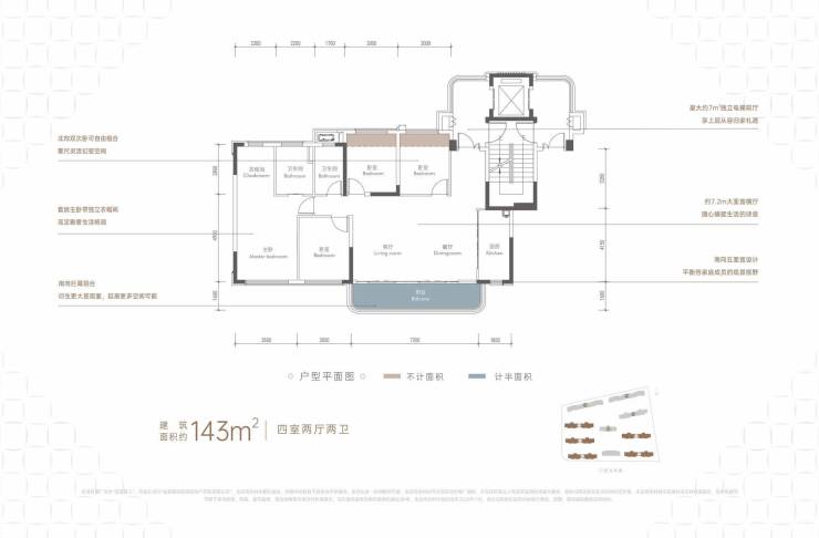 143舒居套四:7.2米大横厅,主卧豪华套房