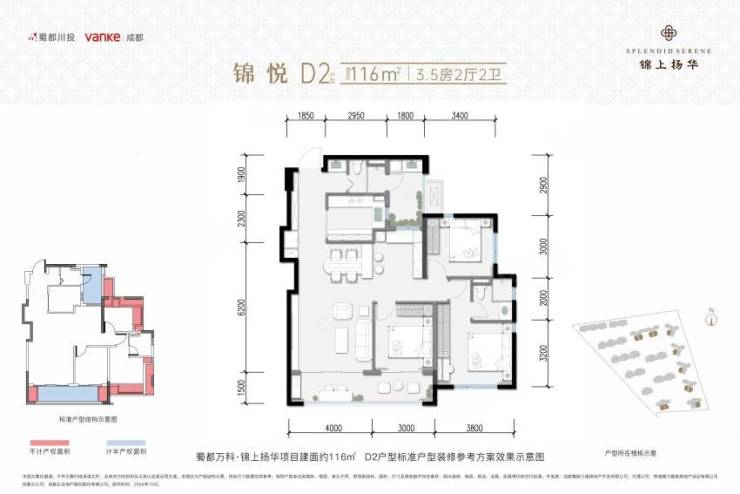 锦悦D2 116㎡ 3+1房两厅两卫(灵动空间)