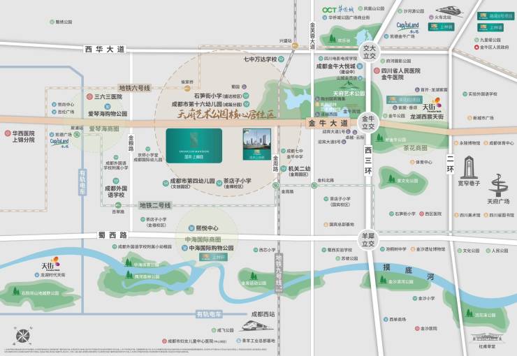 交通:三横两纵成熟交通环绕;三横:金牛大道、西华大道(沙西线)、蜀西路(羊西线),两纵:西3环、3.5环。地铁2号线/9号线(规划中)金周路站,距项目约900米,地铁6号线侯家桥站,距项目约1000米