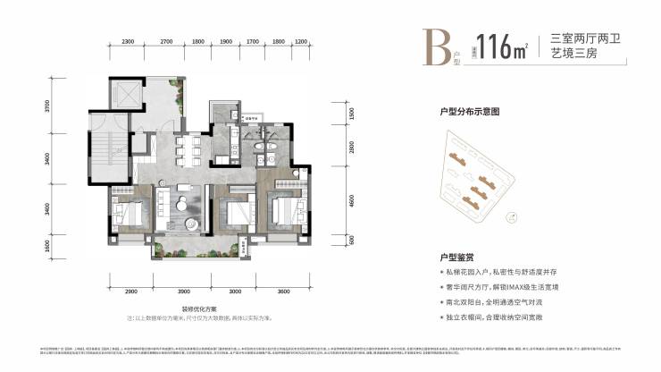 107m²/112m²/116m²三室两厅两卫;140m²四室两厅两卫;176m²五室两厅两卫(跃层)