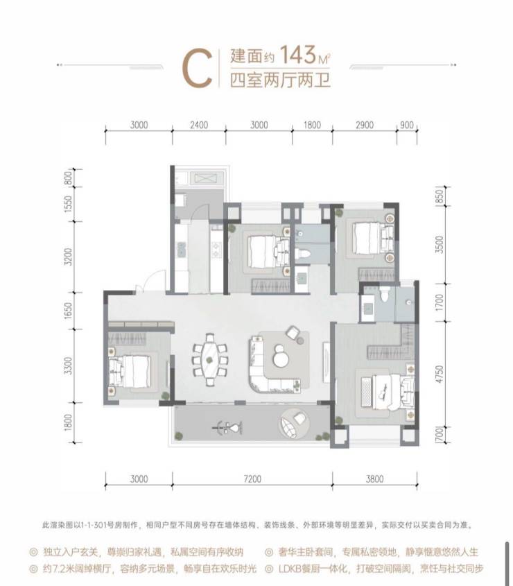主力户型:115-125-143㎡三至四房