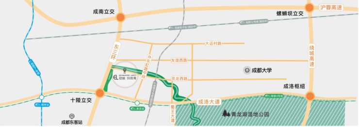 交通:两纵(三环/蜀王大道)两横(成洛大道/蜀都大道)交通路网,通达全程;地铁4号线来龙,规划道路修好以后800m。门口有公交车站点(暂未开通),项目门口100m三环路135路公交车十陵立交北站。