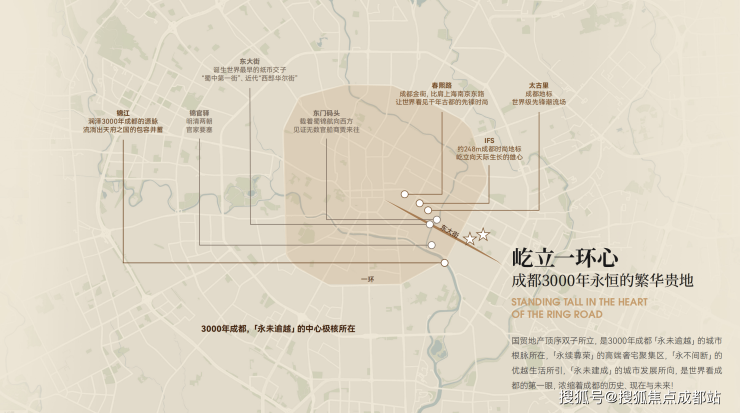 国贸地产双子所立之处,成都3000年永恒的繁华贵地,东大街一脉承续千年商脉与交子金融基因,集历史底蕴、金融核心、时尚封面与高端住区于一体,居住与收藏价值兼备。