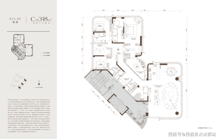 中海翡悦天华打造的是208 - 318㎡的千万级顶豪产品,将成为与489超塔同框的豪宅地标建筑。整个楼盘套均面积超过250㎡,其中300㎡以上的超级大平层占比接近三分之一,是标准意义上的CBD战略级大平层项目。它不仅代表着天东片区产品的最高能级,更因其与489超塔同框联动,成为天府封面不可忽视的重要组成部分。在翡悦天华的设计上,中海运用最新一代产品设计语言,借鉴「玖序」的成功经验,塑造出强烈的国际先锋感,让建筑与时代潮流接轨。
