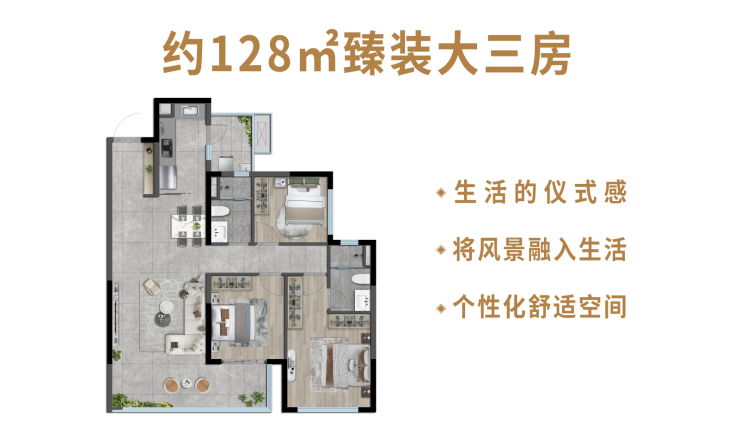 臻选户型:128㎡三房两卫;142㎡四房两卫