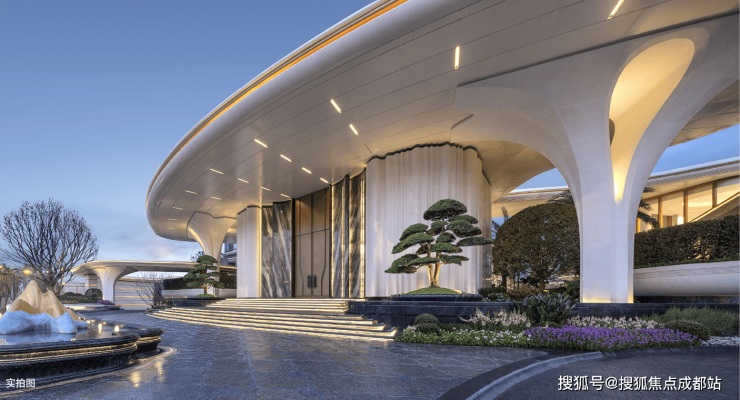 大门搭配的超尺度日照金山雕塑、与国家工艺美术大师亲研的和田碧玉门钹,更将尺度、文化与仪式的融合,与精神高度的锚定,使大门区域不再只是通往家的路径,更是金融城三期的精神堡垒、致敬成都文明的城市雕塑,让居住者每一次穿行,都感受到心理和视觉上的双重享受。