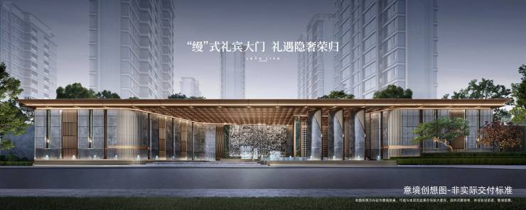 打造长约55米,高约7米的超长星级酒店式大门,搭配约606片菱形星空顶,再以奢石造景,启幕礼序归家。